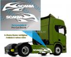 Autocollants SCANIA flamme blanc. 15x53mm. Pré-coupés, décollez et collez comme un autocollant classique ou utilisez la méthode décalque.