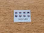 8 décalques MONOSEM NX. 4x4mm. Fond transparent. Décalque à l'eau. Couper au plus proche du motif et laissez tremper 10/15 secondes pour décoller le motif.