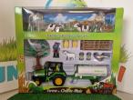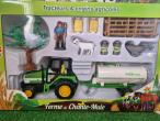 Coffret agricole N°1 comprenant 2 figurines, un tracteur avec engin agricole, 2 vaches, 1 mouton, 2 panneaux, 2 bidons de lait, 2 bottes de paille, 1 brouette, 1 arbre, des barrières.