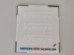3 autocollants logo KRAMPE blanc. Hauteur 8mm. Pré-coupés, décollez et collez comme un autocollant classique ou utilisez la méthode décalque.