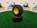 2 jantes aluminium arrière (jaune) + 2 pneus pour ensileuse JOHN DEERE 8500i (Wiking 7832)