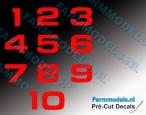10 autocollants Chiffres 1 à 10 rouge. Hauteur 10mm. Pré-coupés, décollez et collez comme un autocollant classique ou utilisez la méthode décalque.