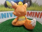 Peluche à l'effigie de la mascotte KOMATSU représentant un renard Kitsumi habillé avec un baudrier et un casque de chantier jaunes. 16,00 x 14,50 x 18,50 cm.
