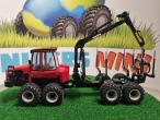 Porteur forestier KOMATSU 875. Cette authentique réplique en métal coulé sous pression du porteur Komatsu 875 présente un intérieur de cabine de chauffeur détaillé avec précision, un bras de grue télescopique à longue portée avec un grappin fonctionnel ainsi qu’une articulation de direction et un châssis oscillant.