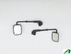 2 rétroviseurs type JOHN DEERE adaptables et orientables avec support. Kit composé de 6 pièces résine noire + feuille autocollante miroir. Longueur monté : 28 mm. Hauteur : 13 mm.