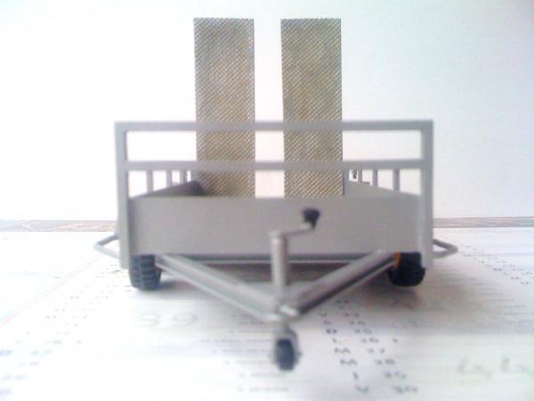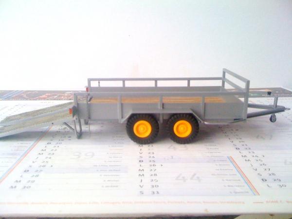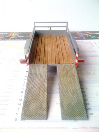 Remorque en plastique et plateau en balsa ,12,5 de long pour 6,7 de large avec rampes de 8cm de longs et 2,5 de larges , les rampes sont mobiles