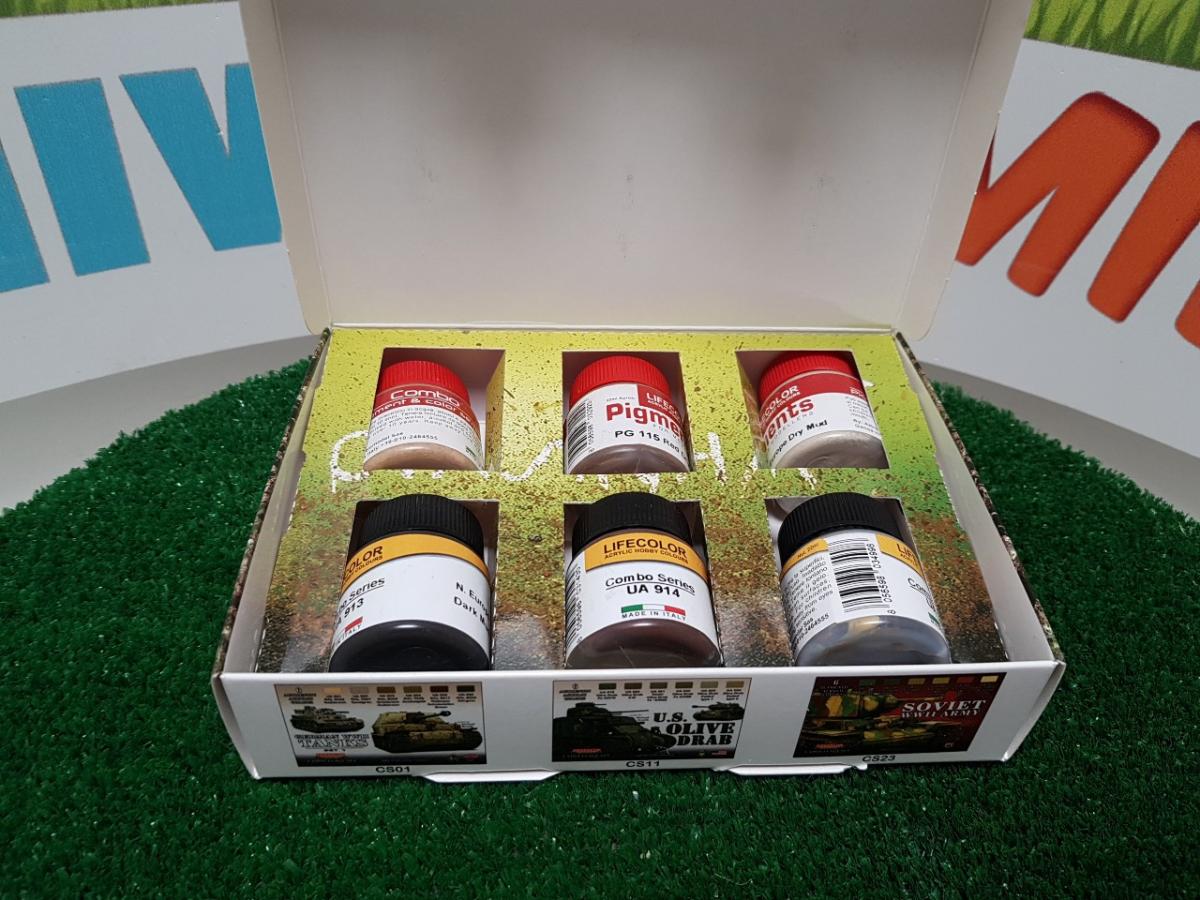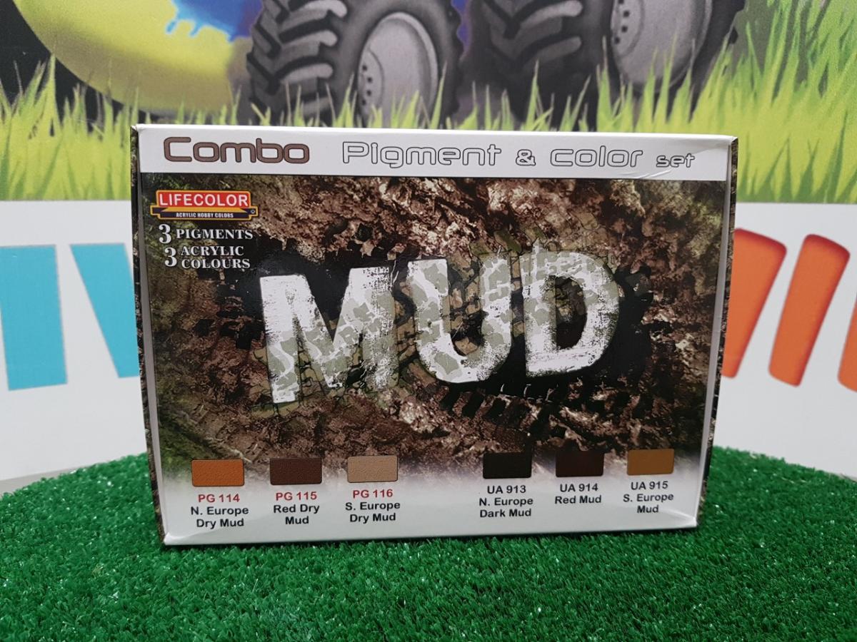 Teintes et Pigments pour réaliser des effets de boue sur vos maquettes et dioramas. Ce set contient 3 pots de poudres/pigments et 3 couleurs acryliques pour rendre boueux tout ce que vous souhaitez. Les pigments ont été développés pour reproduire des teintes et effets réalistes