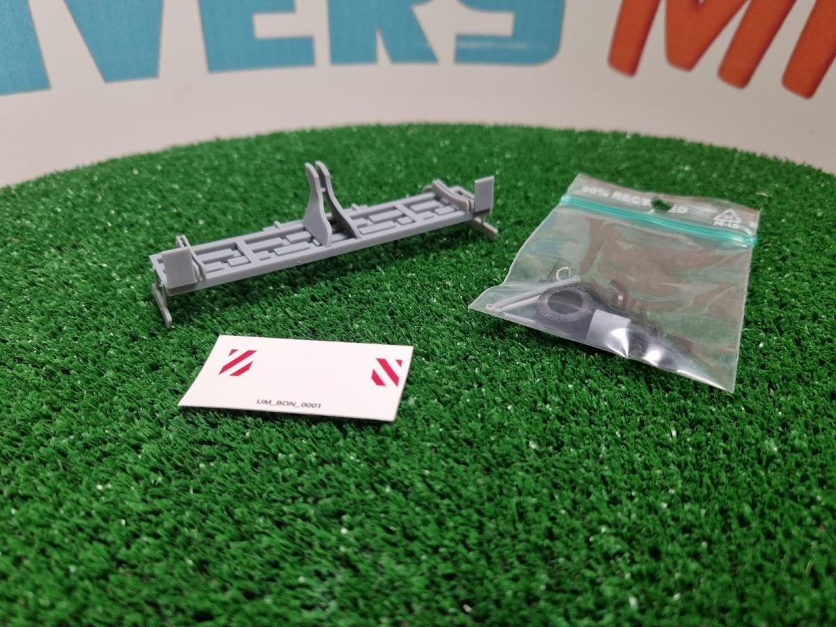 Cultivateur frontal 3m en kit. A monter et à peindre. Peut être combiné avec le tasse avant référence UM384. Le kit comprend le châssis, 2 pneus noir, 2 jantes, 16 dents noirs, 1 cheville, 2 bras 3ème point et 1 planche de décalques Bonnel pour personnalisation.