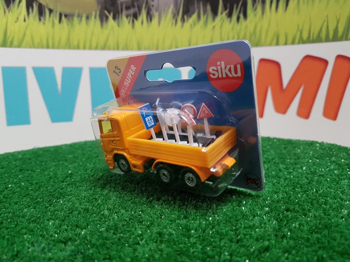 Camion avec panneaux de signalisation routière. 80x28x39mm.