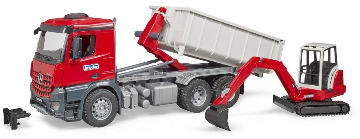 Camion MB Arocs conteneur + mini-pelle
