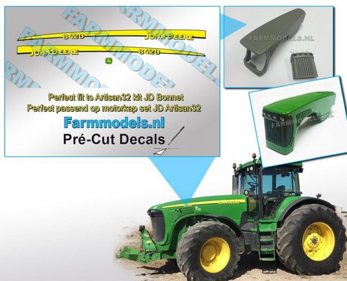 Autocollant capot JOHN DEERE 8420 et logo John Deere calandre pour capot Artisan32 référence 01313 (pré-coupés).