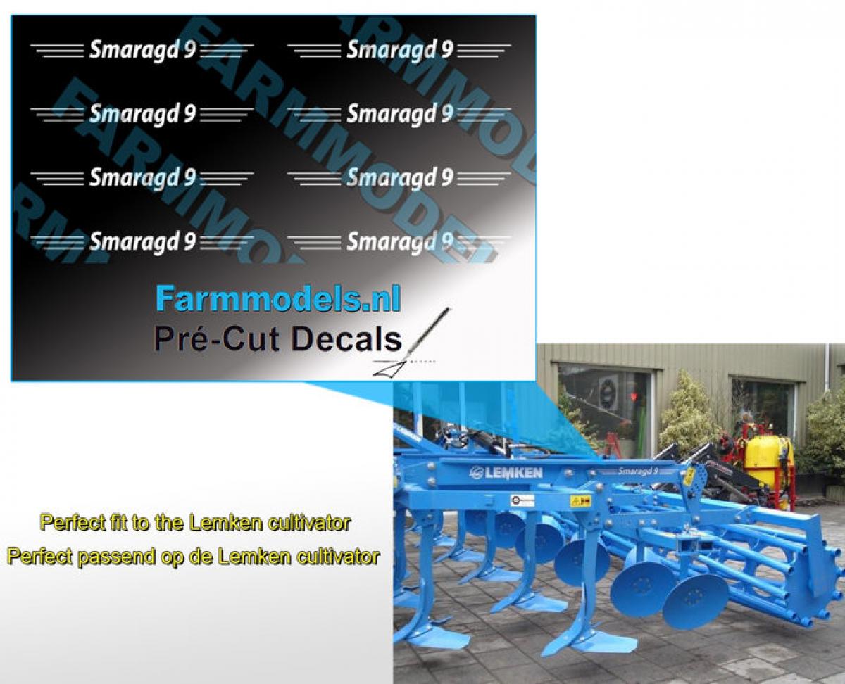 8 autocollants LEMKEN Smaragd 9. Hauteur 2.7mm. Pré-coupés, décollez et collez comme un autocollant classique ou utilisez la méthode décalque.