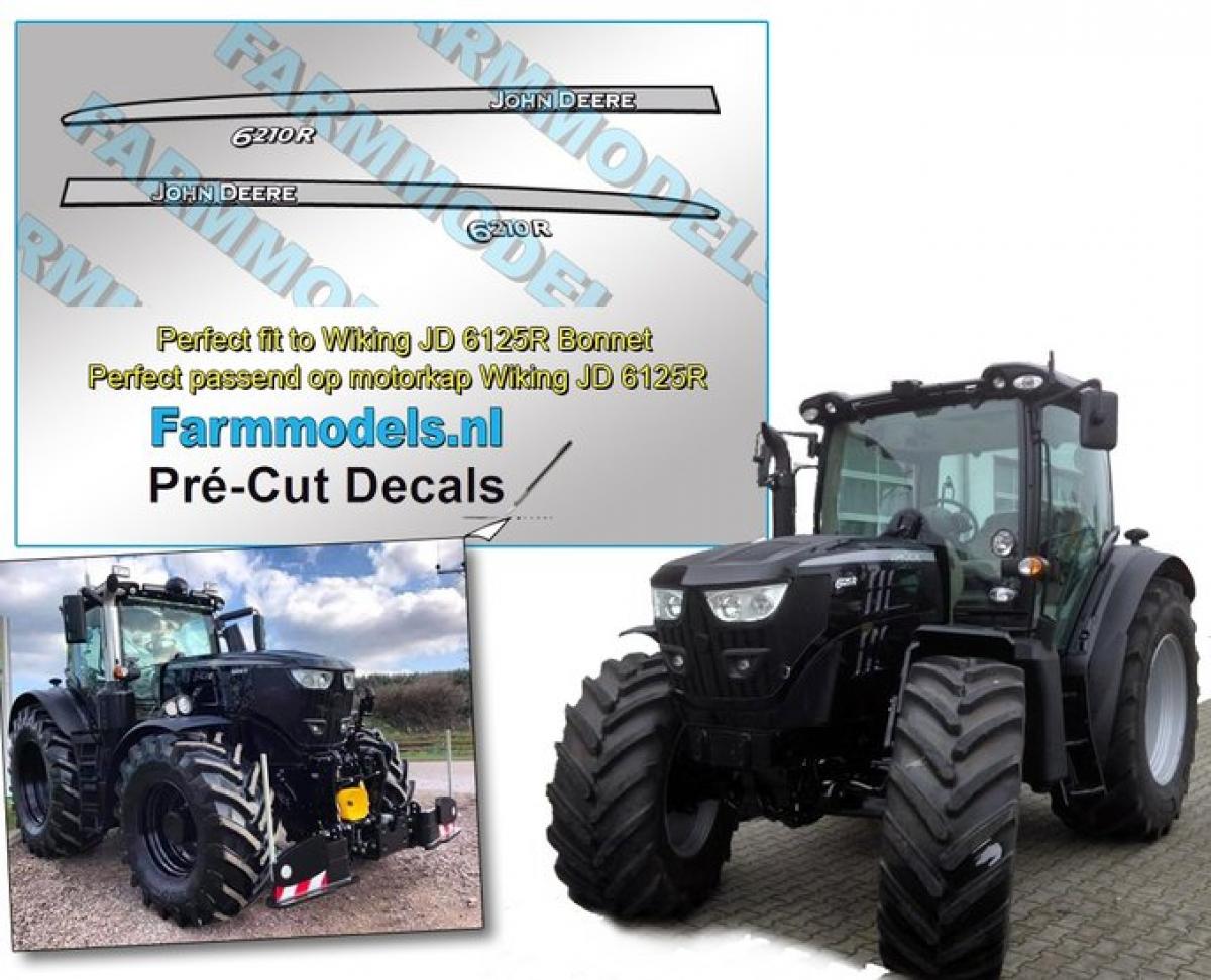 2 autocollants capot JOHN DEERE 6210R Black Version N°2 (pré-coupés)