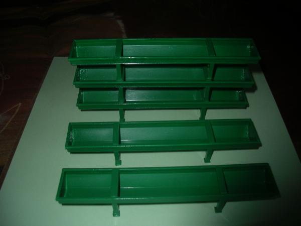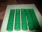 5 AUGES A BOVIN EN MÉTAL ET PLASTIQUE,PEINTURE VERTE .LONGUEUR 13 cm LARGEUR 2.3 cm ET HAUTEUR 2 cm ,NOUVEAUX PIEDS.