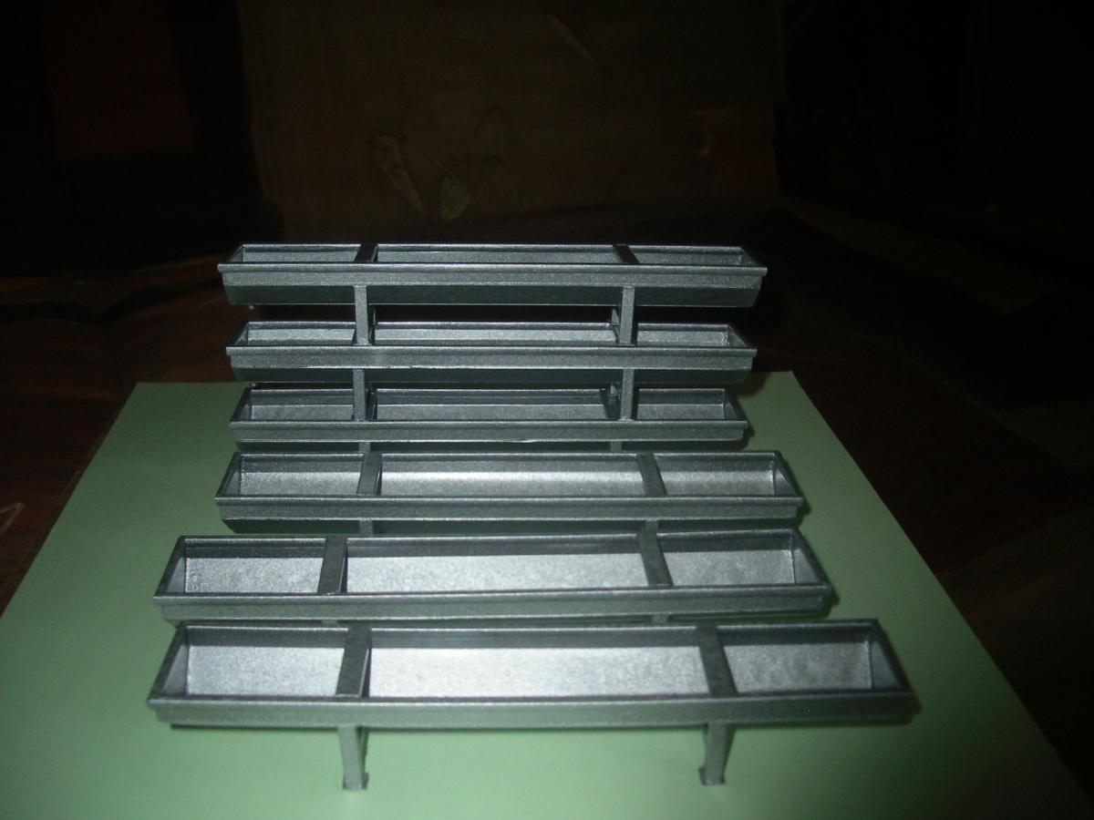 6 AUGES A BOVIN EN MÉTAL ET PLASTIQUE,PEINTURE GALVA .LONGUEUR 13 cm LARGEUR 2.3 cm ET HAUTEUR 2 cm ,NOUVEAUX PIEDS.