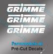 3 autocollants logo GRIMME blanc. Hauteur 3mm. Pré-coupés, décollez et collez comme un autocollant classique ou utilisez la méthode décalque.