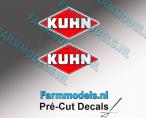 2 autocollants logo KUHN. Hauteur 10mm. Pré-coupés, décollez et collez comme un autocollant classique ou utilisez la méthode décalque.