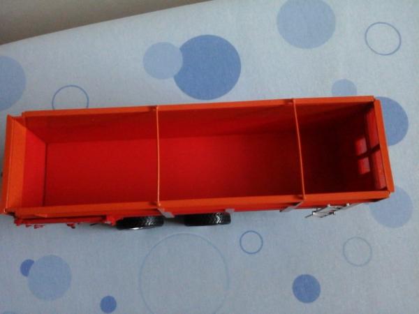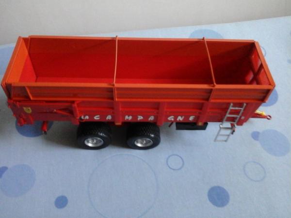 Benne La Campagne la flèche a été modifié pour que le premier essieux touche le sol.L articulations de la benne est casser coter gauche.