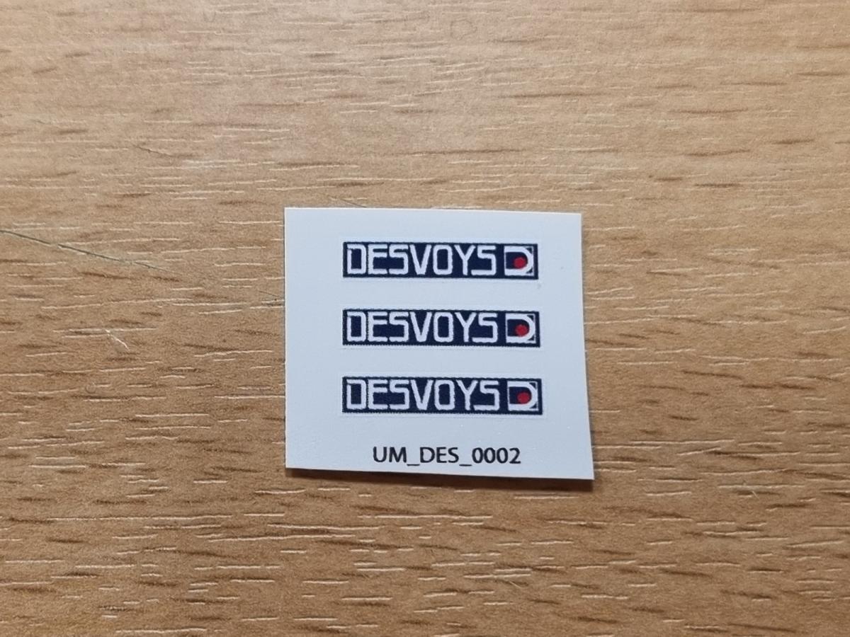 3 autocollants logo DESVOYS. 4x18mm. Pré-coupés, décollez et collez comme un autocollant classique ou utilisez la méthode décalque.