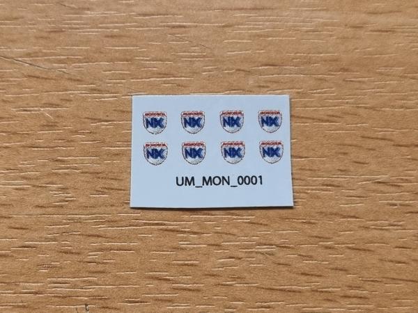 8 décalques MONOSEM NX. 4x4mm. Fond transparent. Décalque à l'eau. Couper au plus proche du motif et laissez tremper 10/15 secondes pour décoller le motif.