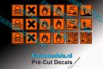 18 autocollants matière dangereuse. 7.8mm de hauteur. Pré-coupés, décollez et collez comme un autocollant classique ou utilisez la méthode décalque.