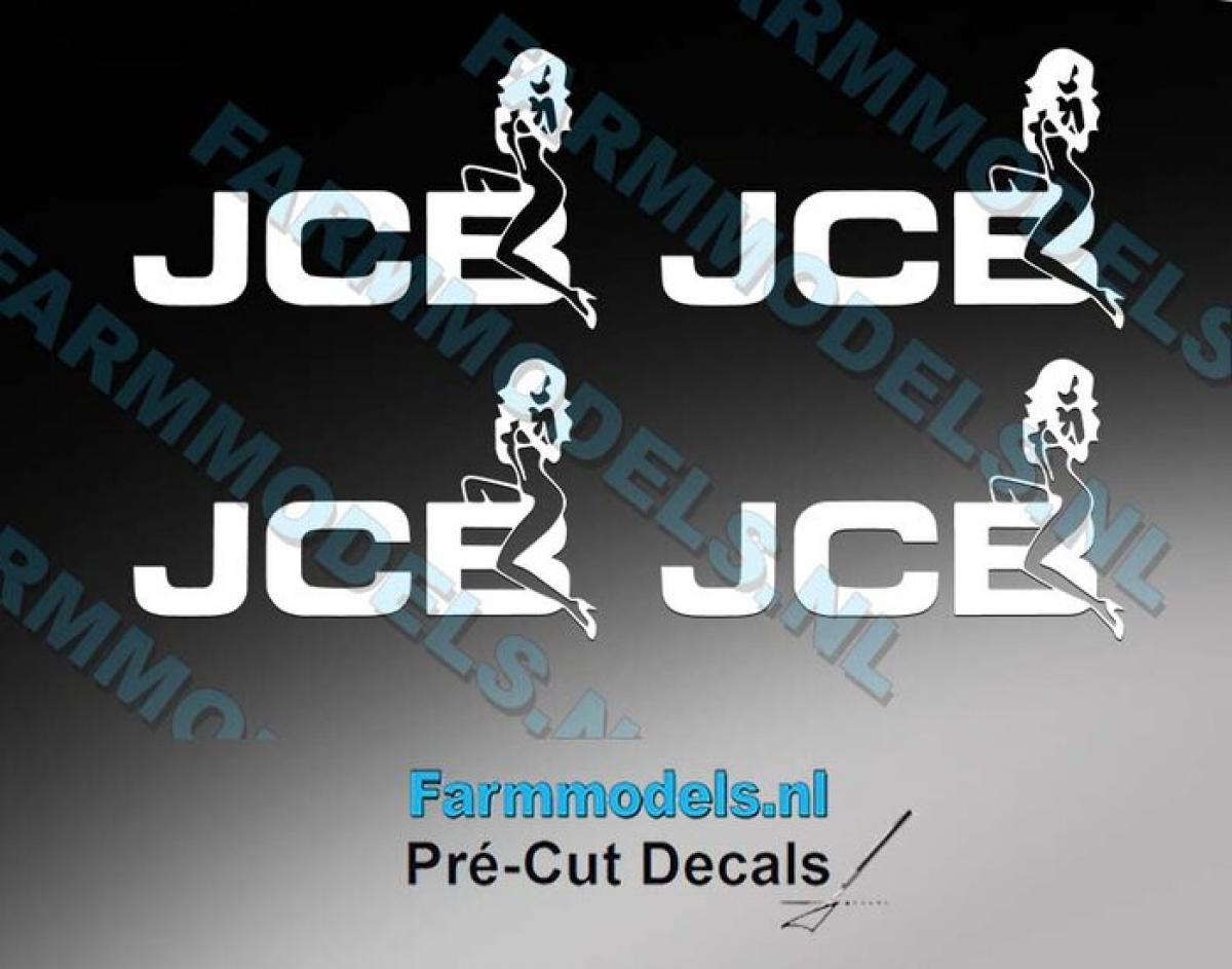 4 autocollants JCB avec femme blanc. 7.5x12.5mm. Pré-coupés, décollez et collez comme un autocollant classique ou utilisez la méthode décalque.