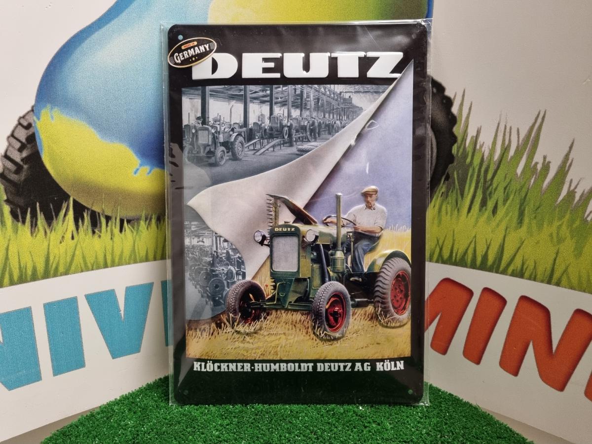Plaque métal 3D tracteur DEUTZ. 20 x 30cm. Percée aux 4 coins. Plaque en relief.