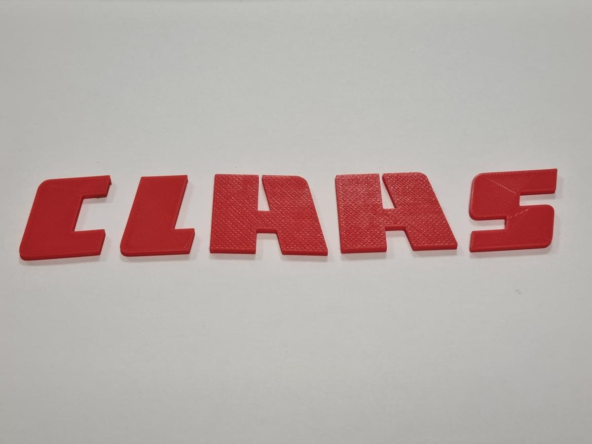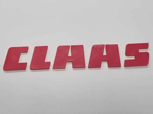 Logo CLAAS 3D pour concession. 30x170mm. Epaisseur 2.5mm. A coller sur votre concession. Peut etre combiné avec la référence UM_CLA_0025 en collant les autocollants individuels sur chaque lettre 3D pour un rendu lisse.