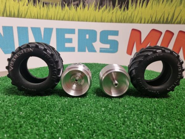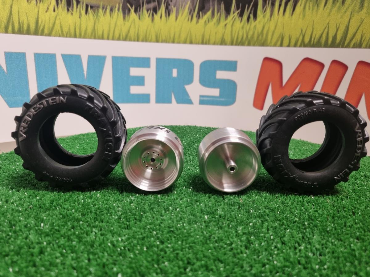 2 jantes aluminium avant + 2 pneus Vredestein pour ensileuse JOHN DEERE 8500i (Wiking 7832). Diamètre 68.5mm. Largeur 32mm. Utilisez les réducteurs référence 11_29004/JD pour finir l'ensemble.