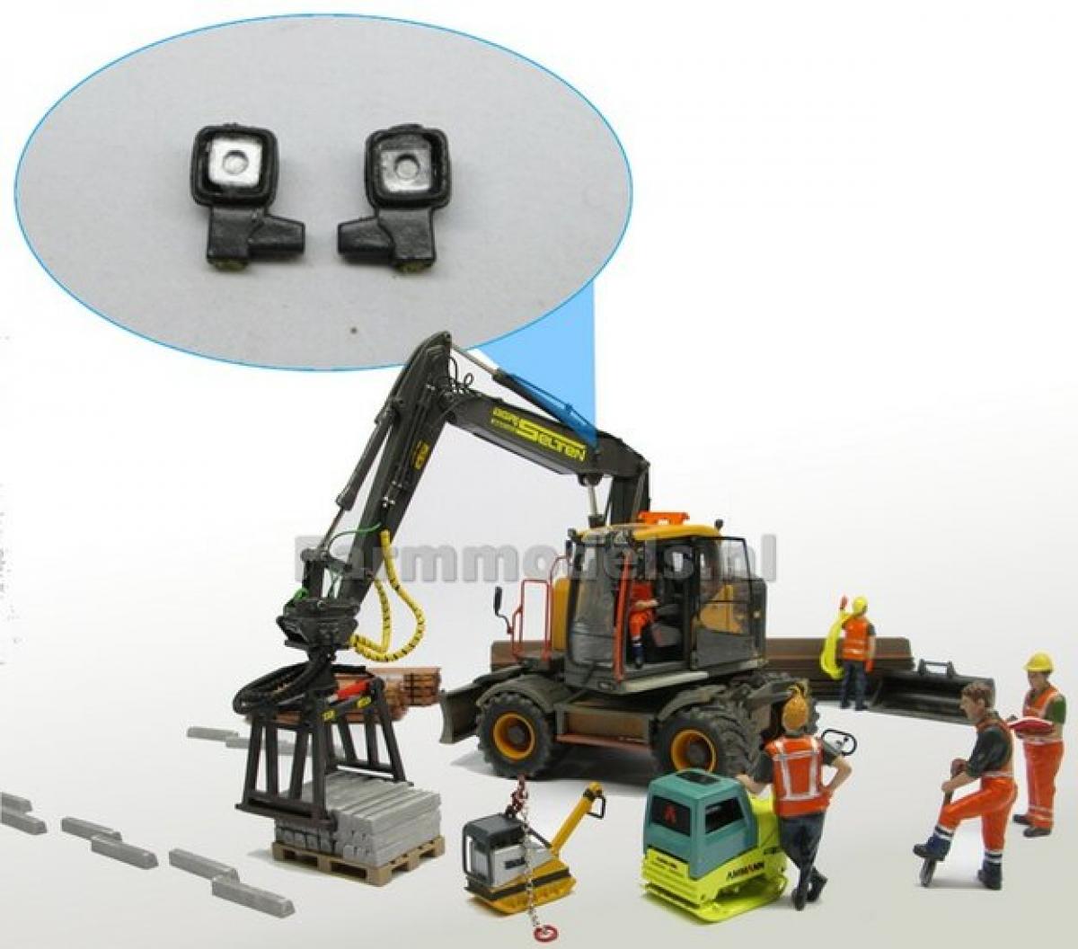 2 feux de travail carré avec support. 4x4mm. Provenant de la pellleteuse Volvo AT-Collecton.