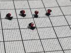5 feux rouge avec pied pour cabine. Les pieds sont imprimés en 3D. Il est possible qu'un léger ponsage sous le pied soit nécessaire pour qu'il soit parfaitement plat.
