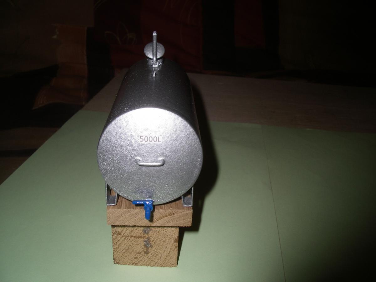 tonne a eau sur pieds de 5000L a monte sur chassie . couvercle qui ouvre et avec un robinet,peinture galva .
