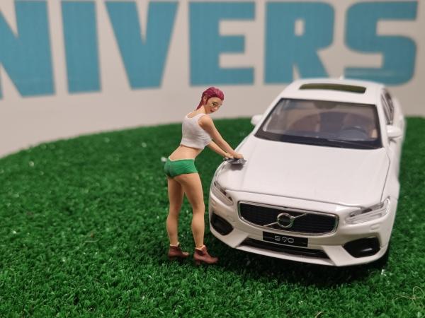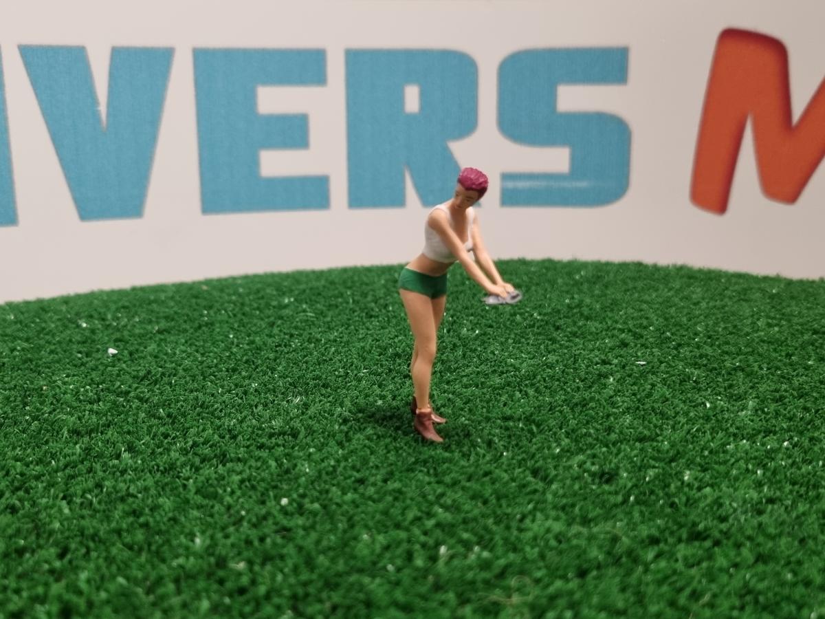 Femme avec éponge vert/blanc. Figurine peinte à la main et livrée dans une boite de protection. Livrée avec pastille adhésive pour maintenir le personnage debout. Le coloris peut varier selon l'arrivage.