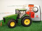 Tracteur JOHN DEERE 8345 R radiocommandé. Le coffret comprend le tracteur, une télécommande (fonctionne avec 4 piles LR06 (AA) non fournies), une batterie et son chargeur.