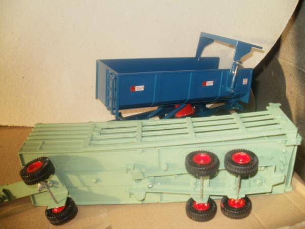 état excelent,la bétaillière est prise sur base de 2 siku assemblée,rajout d'une barrière amovlble pour souricière et repeinte et fabrication d'un essieu avant avec flèche et pose de 2 essieux à l'arrière