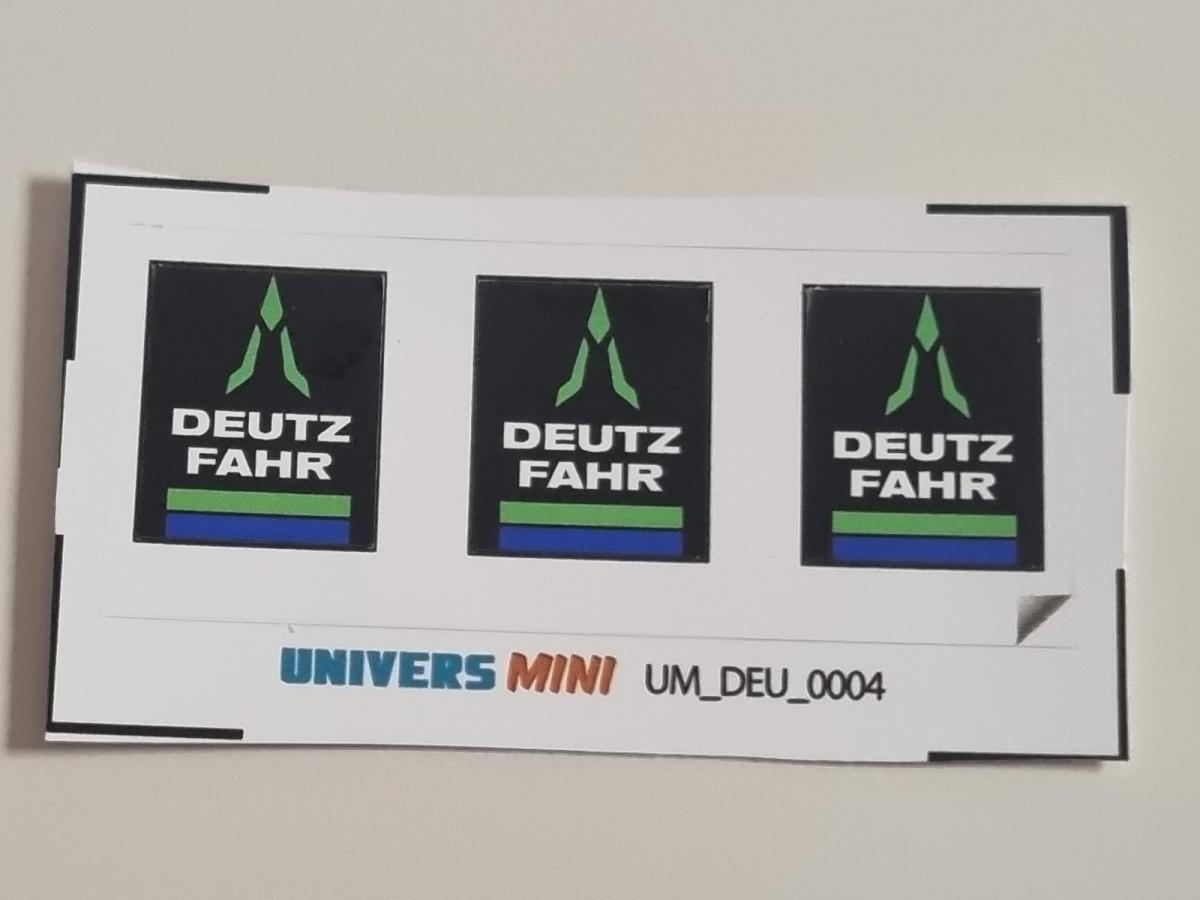 3 autocollants logo DEUTZ-FAHR. 14.3x12mm. Pré-coupés, décollez et collez comme un autocollant classique ou utilisez la méthode décalque.