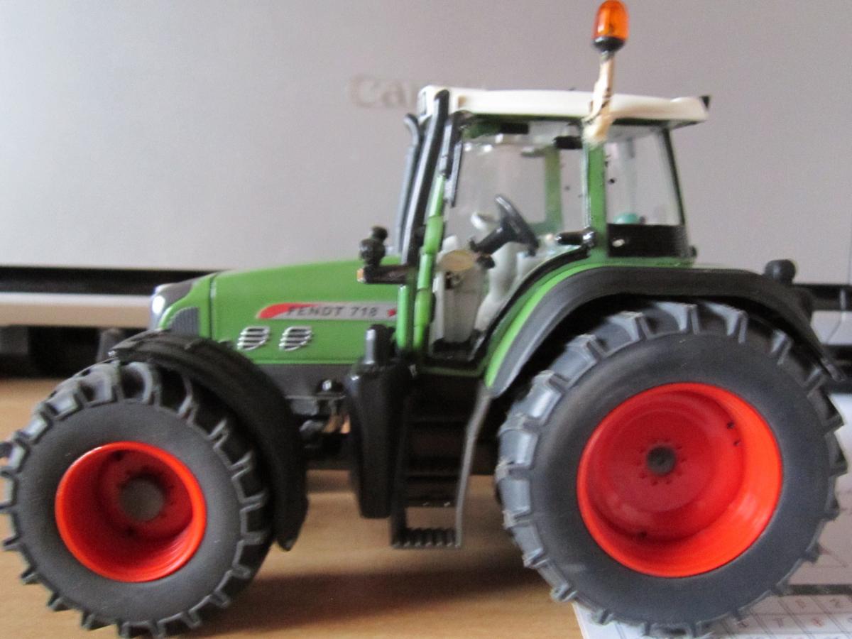 Fendt 718 modifier: nouveau gyro ,peinture à l’intérieure de la cabine, adaptateur siku sur le rav peinture des relevages couleur chassis ,vendue avec 2 jeu de pneus ar, 1 usée et l'autre neuf les pneus avant son nickel ,boite un peu abimer . en l’état