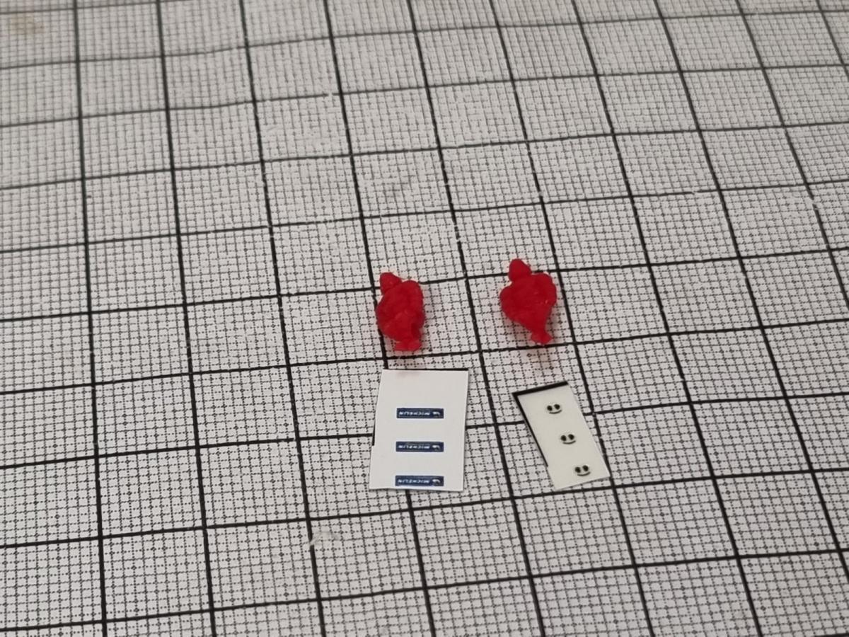 2 Bibendum Michelin assis rouge 10mm. Livrés avec autocollants pré-coupés pour terminer le bonhomme.