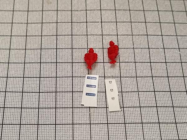 2 Bibendum Michelin assis rouge 14mm. Livrés avec autocollants pré-coupés pour terminer le bonhomme.