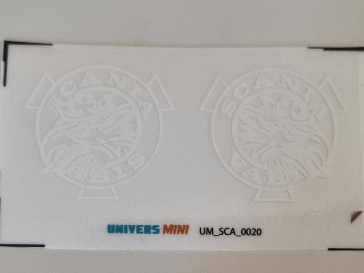 2 autocollants SCANIA Vabis blanc 29mm. Pré-coupés, décollez et collez comme un autocollant classique ou utilisez la méthode décalque.