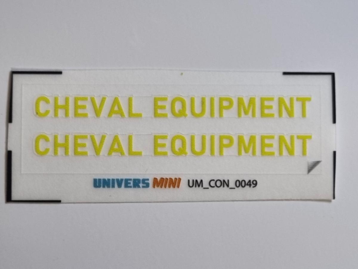 2 autocollants concession CHEVAL EQUIPMENT jaune. 4x53.8mm. Pré-coupés, décollez et collez comme un autocollant classique ou utilisez la méthode décalque.