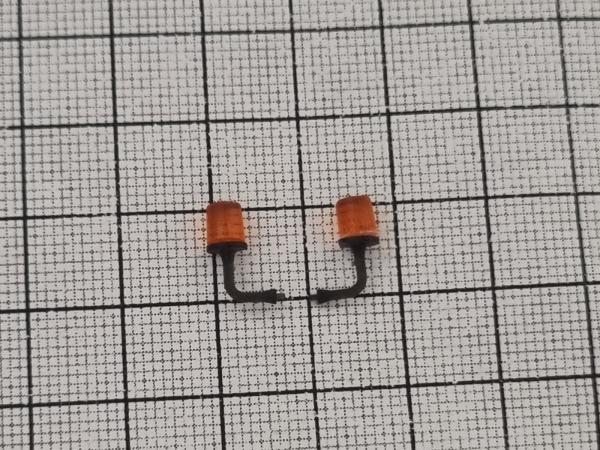 2 gyrophares cylindrique avec support type 3. Hauteur 10.3mm. Le support est livré en noir mais peut être repeint.