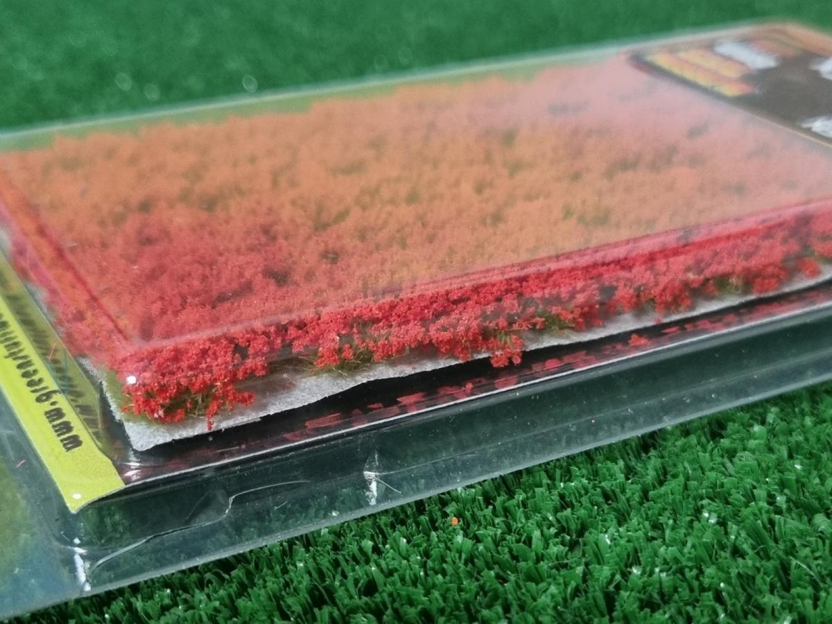 75 touffes de fleurs rouge . Hauteur 6mm. Prêt à l'emploi en décollant simplement chaque touffe individuellement et en la plaçant dans votre scène.