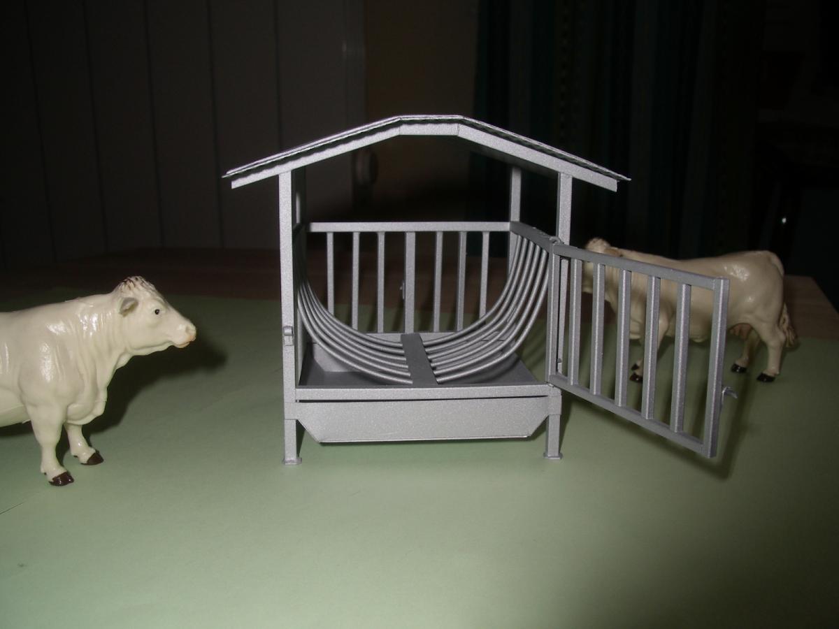 RÂTELIER A BOVIN MODÈLE ÉCHO A GRILLES,L'AUGE ET LE TOIT ET EN MÉTAL LE RESTE EN PLASTIQUE.ATTELAGE 3 POINTS + VENDU AVEC UN ADAPTATEUR POUR AUTRE TRACTEUR .LES ANIMAUX ET LA BOTTE NE SON PAS A VENDRE.
