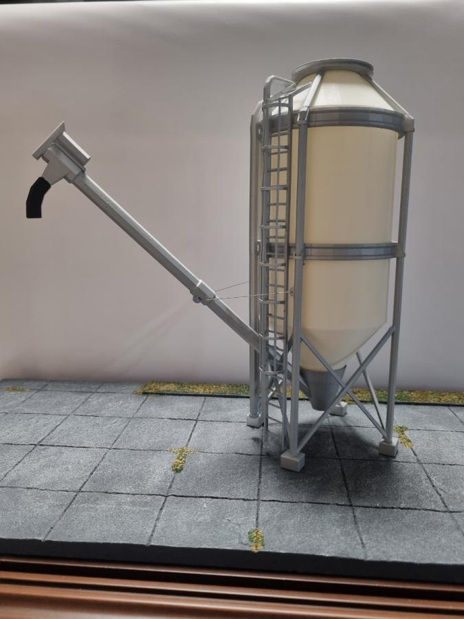 Silo 35000 litres avec vis de chargement. Vendu monté et peint. Il y a juste à installer la vis de chargement. Hauteur du silo 25cm.