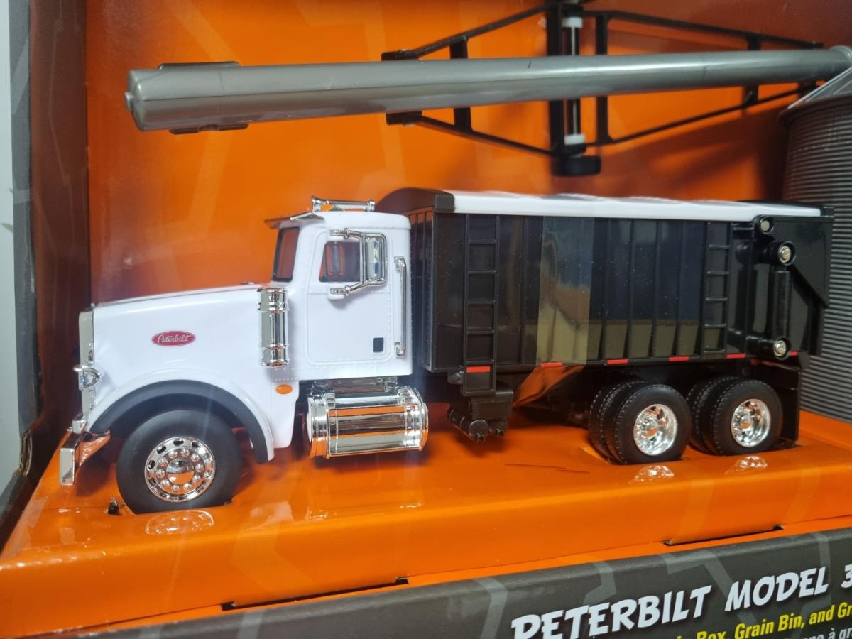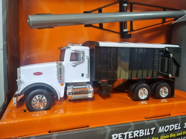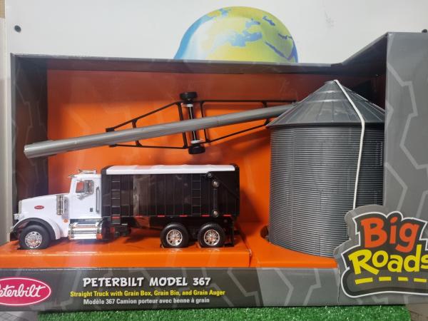 Camion porteur PETERBILT 367 benne avec silo à grain et vis à grain.