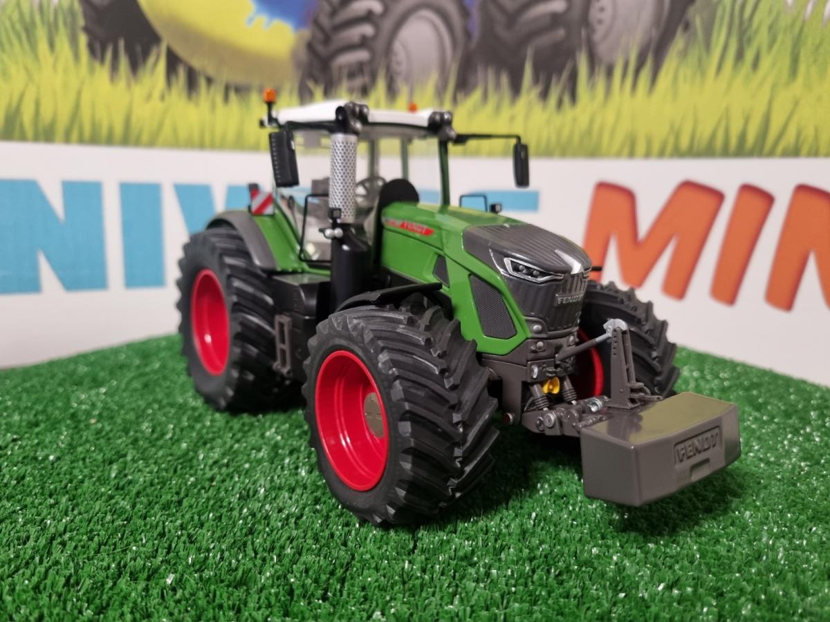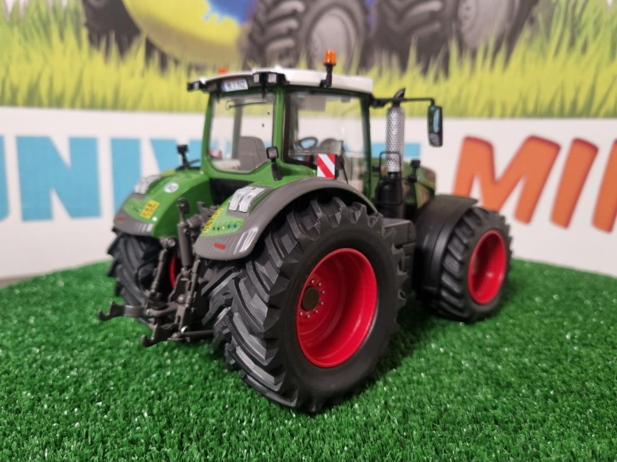 Tracteur FENDT 942 Vario modifié artisanalement : - jantes rouge Fendt avec écrous de roue aluminium - pneus large effet chargé en résine souple - réducteur avant + arrière gris Fendt - grille Chrome pot d'échappement