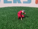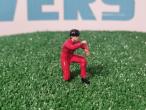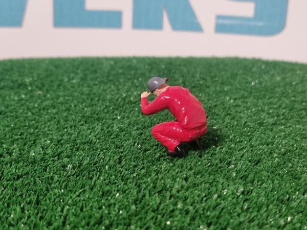 Mécanicien combinaison rouge accroupi. Fabriqué et peint en France.