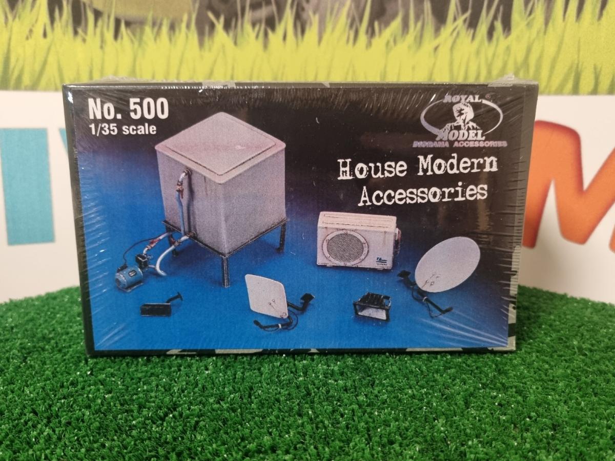 Accessoires divers pour maison moderne. Échelle 1/35ème mais convient parfaitement au 1/32ème. A monter et à peindre, colle et peinture non fournies.