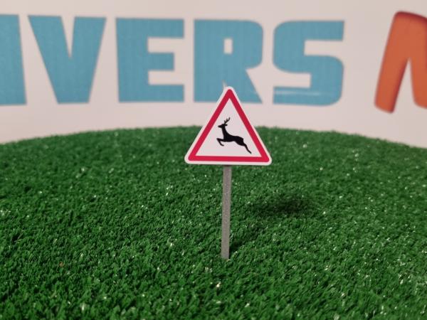 1 panneau attention animaux sauvages prêt à poser. Hauteur environ 60mm. Le panneau est composé d'un support triangle, d'un autocollant en vinyle et d'un pied rectangulaire. Fabriqué en France.